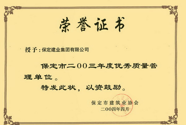 03年度保定市优秀质量管理单位