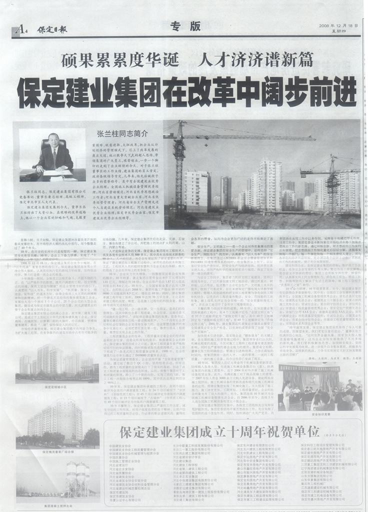 保定日报整版报道集团成立十周年